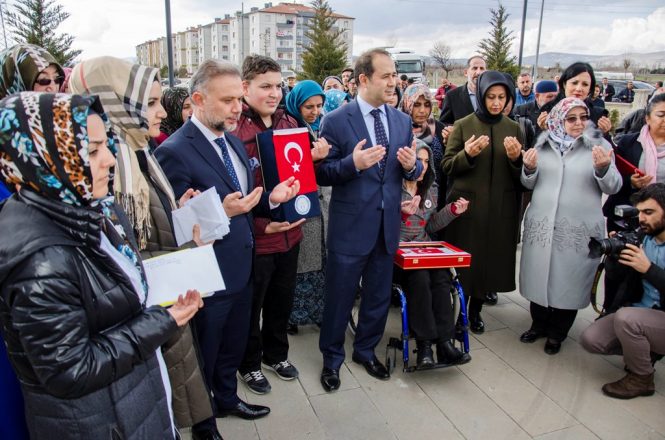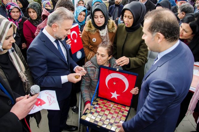 Şehitlerin ruhu için Kur’anı Kerim okunmasının ardından Kahramankazanlı kadınlar hazırladıkları dualı kolyelerle birlikte çocuklarının yazdığı mektupların da askerlere ulaştırılması için Kaymakam ve Belediye Başkanına teslim etti.
