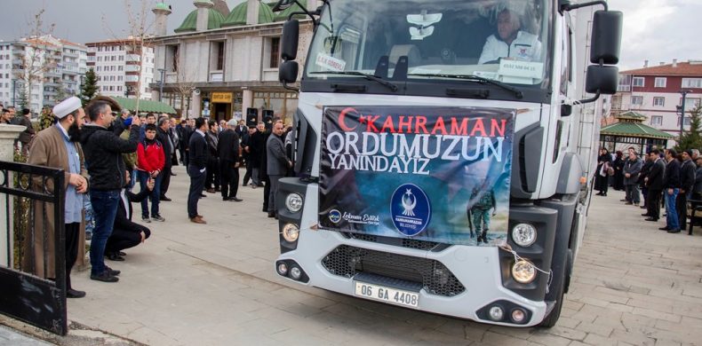 Kahramankazan’da Zeytindalı harekatına katılan askerler için toplanan yardımlar dualarla gönderildi.