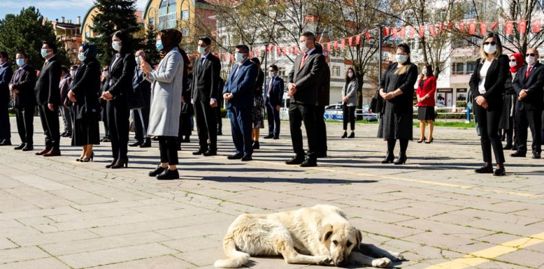Tören alanının sürpriz misafiri ise bir köpek oldu. Davetsiz misafir burada çocukların ilgi dolu bakışları arasında bir süre yatıp güneşlendikten sonra tören alanından ayrıldı.
