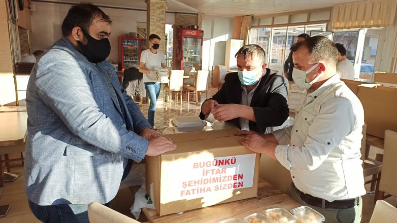 Proje kapsamında ilçede 9 şehit adına 45 kişilik 9 aileye iftar sofrası kuruldu. İçinde iftarlık malzemelerin yer aldığı koliler