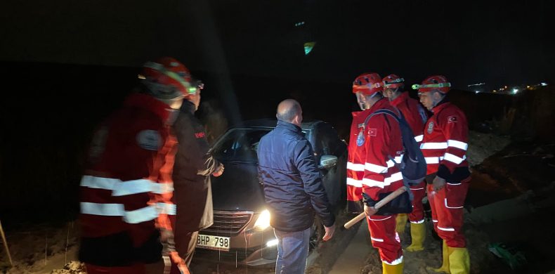 Haber verilmesinin ardından yarım saat içinde toplanarak bölgeye giden Arama Kurtarma ekibi yaklaşık 4 saattir mahsur kalan aileyi kısa sürede bulunduğu yerden alarak güvenli alana ulaştırdı.