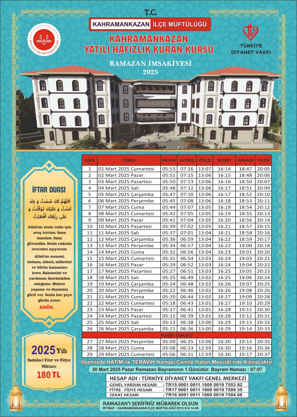 Bu manada biz de Kahramankazan Müftülüğü olarak Ramazan ayında dolu dolu programlarla mübarek Ramazan ayını ihya etmeye gayret göstereceğiz. bu manada yapılacak faaliyetleri şöyle özetleyebiliriz.