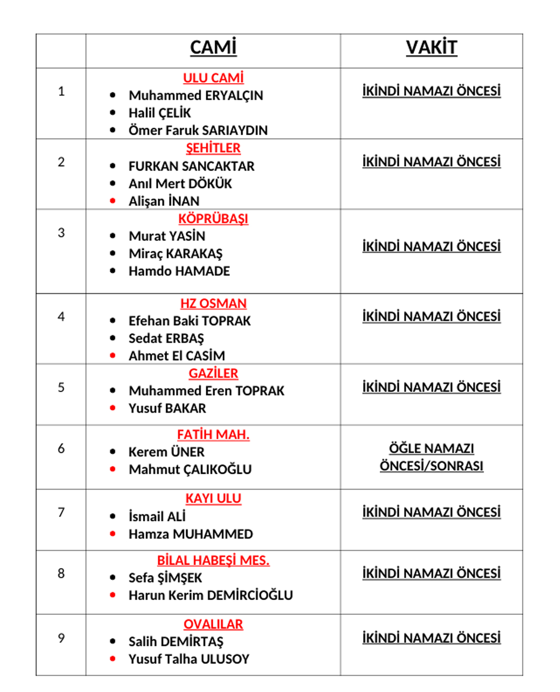 5- Camilerimizde öğlen vaktinde ve teravihlerden önce vaaz irşat programı yapılacak.