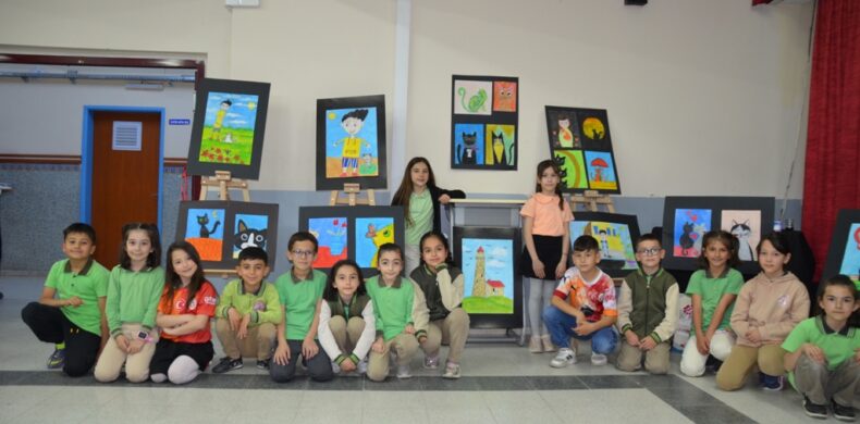 Öğrenciler, öğretmenleri Ali Öztürk ve Sevim Eğinç Doruk’un gözetiminde bir yıl boyunca okudukları kitaplardan esinlenerek yaptıkları resimleri “Okuyorum, çiziyorum” adlı sergiyle ziyaretçilerin beğenisine sundu. Açılışın ardından öğrenci velileri sergiyi gezdi, çocuklarıyla birlikte fotoğraf çekindi.