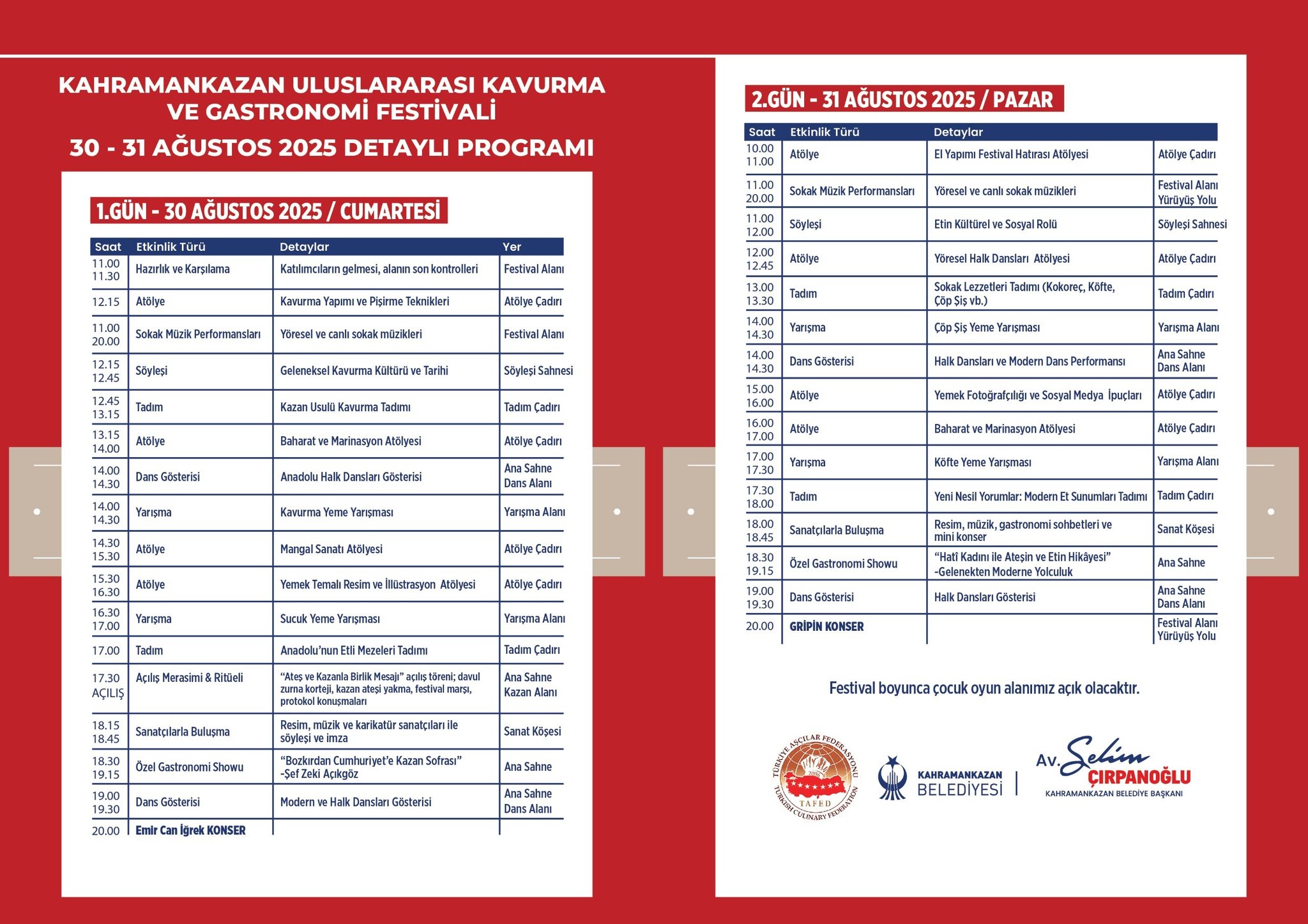 Yöresel et yemekleri, usta şeflerin sahne alacağı özel gösteriler, renkli sahne performansları ve birbirinden heyecanlı etkinliklerle dolu bu lezzet şöleni; hem göze hem damağa hitap eden unutulmaz bir deneyim sunacak.