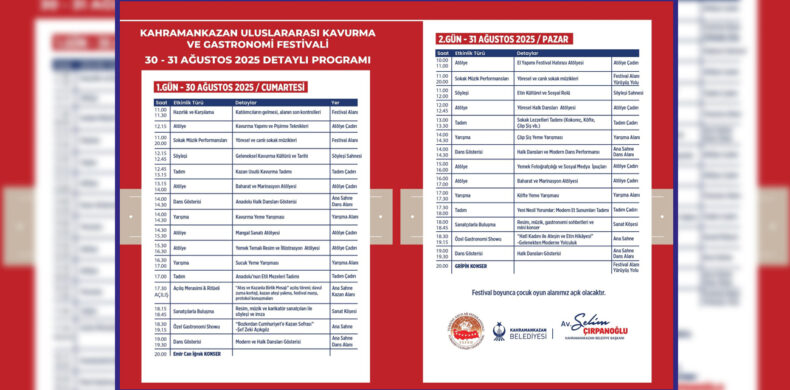Buna göre festivalde 2 gün boyunca usta aşçılar canlı kavurma şovları yapacak, geleneksel et pişirme teknikleri tanıtılacak, söyleşiler, workshoplar, tadımlar, yarışmalar ve müzikle dolu zengin bir program ziyaretçileri bekliyor olacak.
