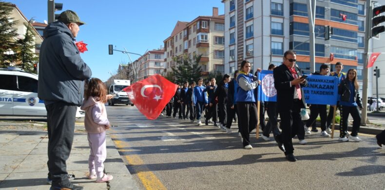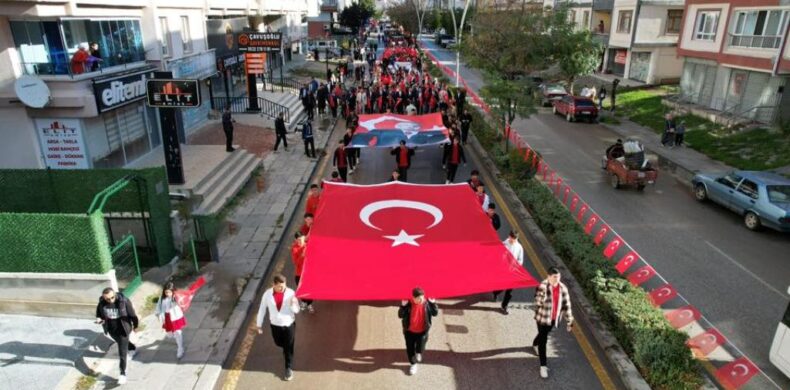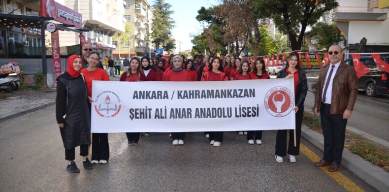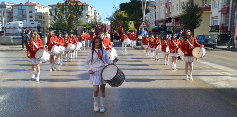 Önde okul bandosu, arkada ilçe protokolü ve öğrenciler ellerinde bayraklar ve çalınan marşlar eşliğinde yürüyen cumhuriyet kortejine vatandaşlar da yol kenarlarında ve evlerinin balkonlarından alkışlarla destek verdi.