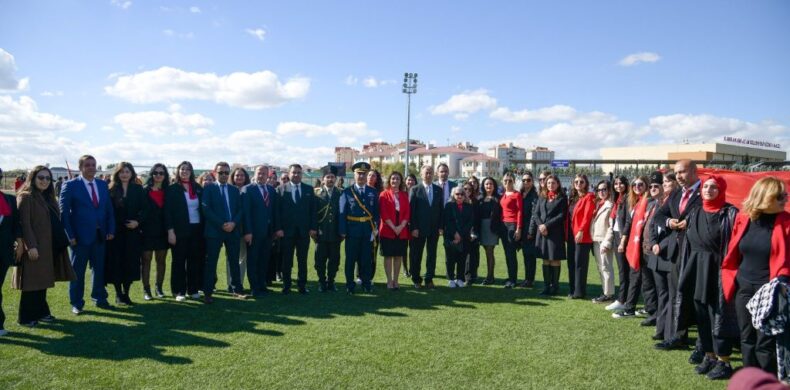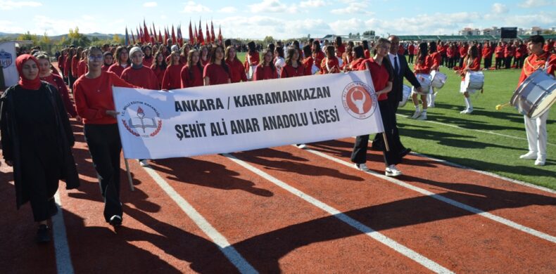 Cumhuriyetimizin 102. yıldönümü, Kahramankazan’da büyük bir coşku ve gururla kutlandı. Bu yılki kutlamalar sahada açılan dev Türk Bayrağı ile taçlandı.