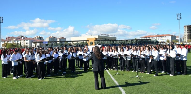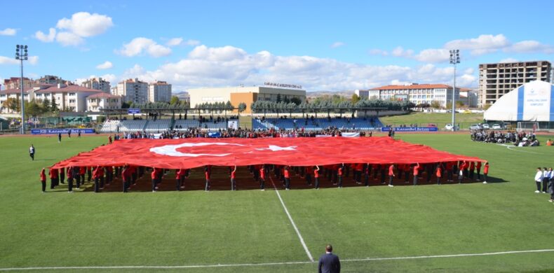 Bu yılki kutlamalara sahada açılan dev Türk Bayrağı damga vurdu. Şehit Ali Anar Anadolu Lisesi tarafından hazırlanan programın son kısmında yer alan “Biz birlikte al bayrağız” adlı bayrak gösterisi büyük ilgi gördü. Öğrenciler sahanın ortasında açtıkları dev Türk Bayrağı ile tribünlerin önüne geldiğinde alkış tufanı koptu.