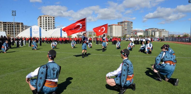 Kutlamalar kapsamında dün Milli Egemenlik alanında Atatürk Anıtına çelenk sunulmasıyla başlayan etkinliklere şehir stadında görkemli gösterilerle devam edildi.