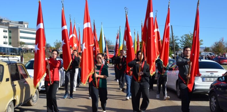 İlçe protokolü öğrenciler ve vatandaşların katılımıyla oluşan cumhuriyet korteji, Devlet Hastanesi Ek Hizmet Binası bahçesinden başlayarak Fevzi Çakmak ve Osmanlı Caddelerini takip ederek kutlamaların yapılacağı şehir stadına kadar yürüdü.