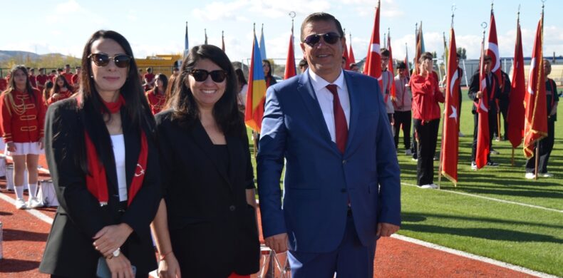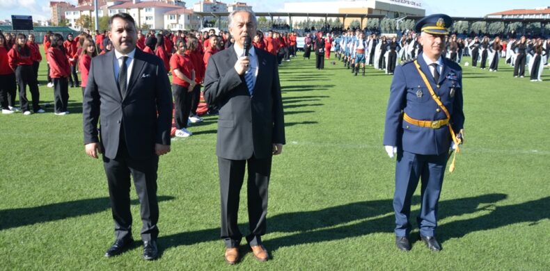 Kaymakam, Belediye Başkanı ve Garnizon Komutanının öğrencilerin ve halkın bayramını kutlamasıyla başlayan şehir stadındaki törenlerde öğrenciler hazırladıkları gösterileri sundu.