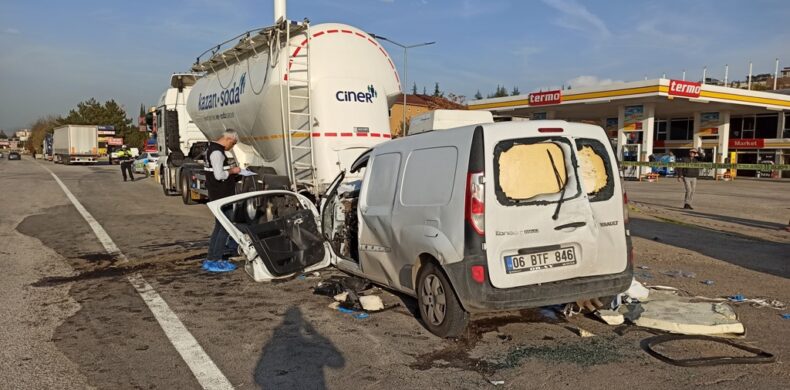 Edinilen bilgiye göre sürücüsünün direksiyon hakimiyetini kaybettiği hafif ticari araç Kahramankazan girişinde yoldan çıkarak yol kenarında park halindeki tankere arkadan çarptı.