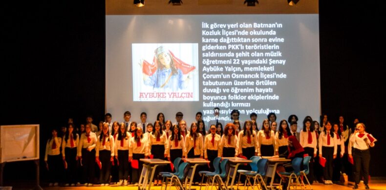 Kutlama programında, yalnızca görevlerini yaptıkları için PKK’lı teröristlerce şehit edilen öğretmenler de unutulmadı. Şehit öğretmenlerin resimleri ve kısa özgeçmişleri sahneye yansıtılarak bir kez daha rahmetle anıldı.