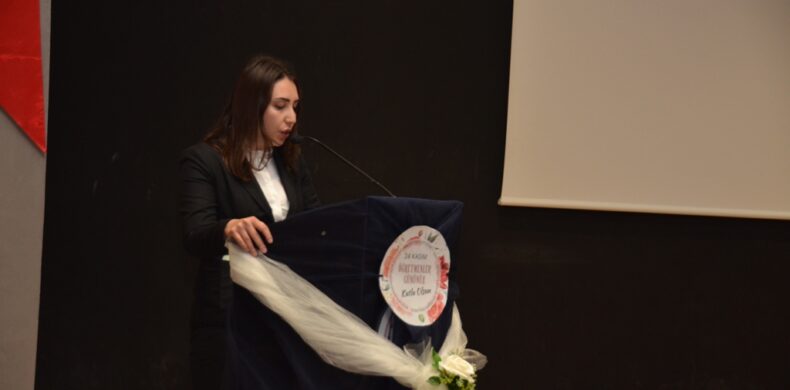 MHG Fen Lisesinden mezun olan ve Fatih Alpaslan Ortaokulunda Beden Eğitimi Öğretmeni olarak görev yapan Rümeysa Çiçek en genç ve Halk Eğitim Müdürlüğünden Çetin Taş en kıdemli öğretmen olarak kürsüye çıkarak meslektaşlarına hitabetti.