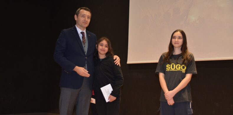 Programın sonunda ilçe genelindeki okullar arasında düzenlenen resim, şiir, hikaye konulu yarışmalarda dereceye giren öğrencilere ödülleri verildi.