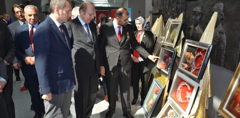 Programın son unda davetliler Kahramankazan 15 Temmuz Gazi ve Şehit Yakınları Derneği ile Halk Eğitimi Merkezinin birlikte düzenlediği kağıt, rölyef, hat sanatı, teship ve ebru sergisini gezdi.