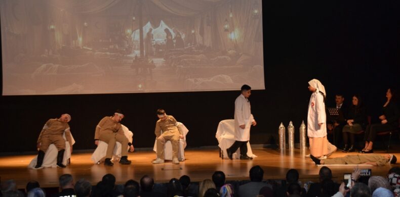 Kur’anı Kerim okunması ve şehitler için dua edilmesiyle başlayan programda Çanakkale Zaferini konu alan oratoryo sahnelendi. Öğrenciler Çanakkale Zaferini anlatan şiirler okudu, Kafkas bölgesi halkoyunları gösterilerini sundu.