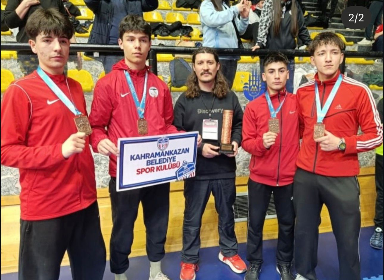 İstanbul’da düzenlenen Türkiye Ümit, Genç ve U21 Karate Premier Ligi’nde mücadele eden Kahramankazan Belediye Spor Kulübü sporcuları, kata kategorisinde takım halinde bronz madalyaya uzanarak ilçemizi gururlandırdı.